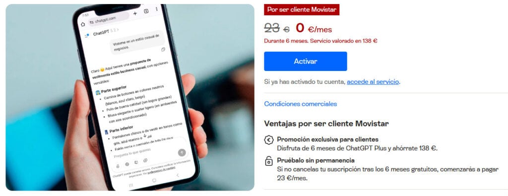 ChatGPT Plus Gratis 6 Meses con Movistar: La Clave Para No Pagar 23 € Sin Querer