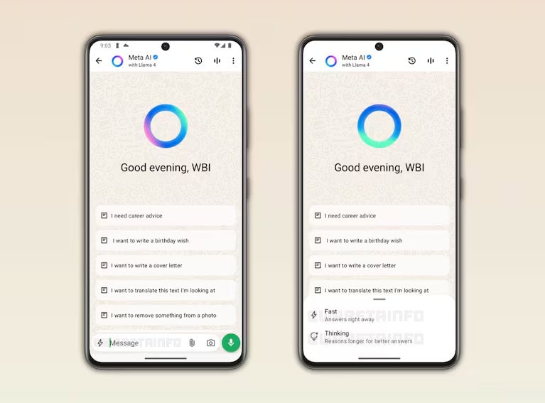 La novedad se está probando en la versión beta de WhatsApp para Android 2.26.3.10. Y revela una idea central: que el usuario pueda elegir entre dos estilos de respuesta, “rápido” o “razonamiento”, según la urgencia y la complejidad del pedido.