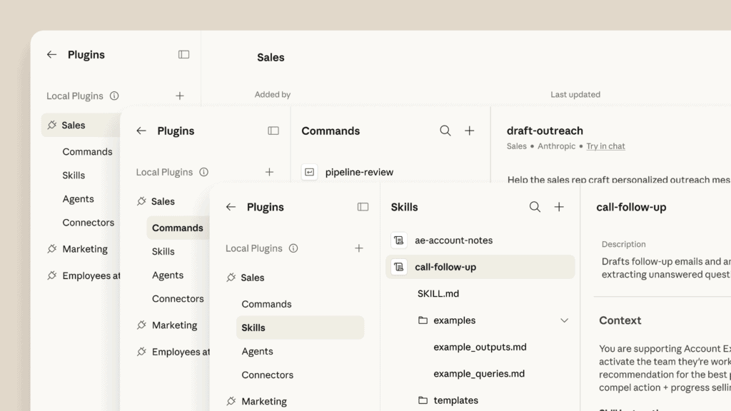Anthropic no está hablando de plugins como simple decoración funcional, sino como paquetes de trabajo pensados para equipos que ya operan con herramientas, procesos definidos y checklists claros.
