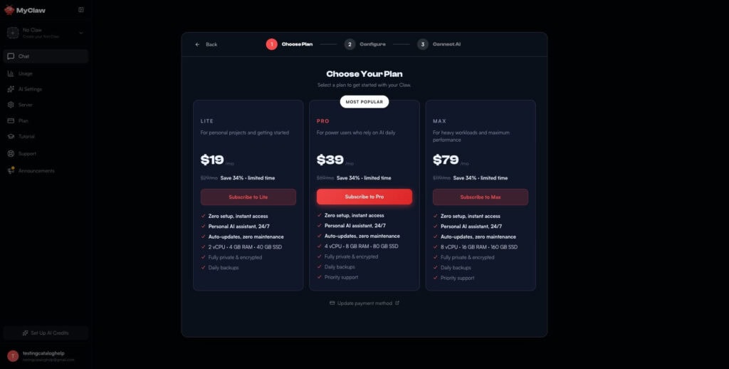 MyClaw convierte el despliegue de OpenClaw en un “elige plan y empieza”